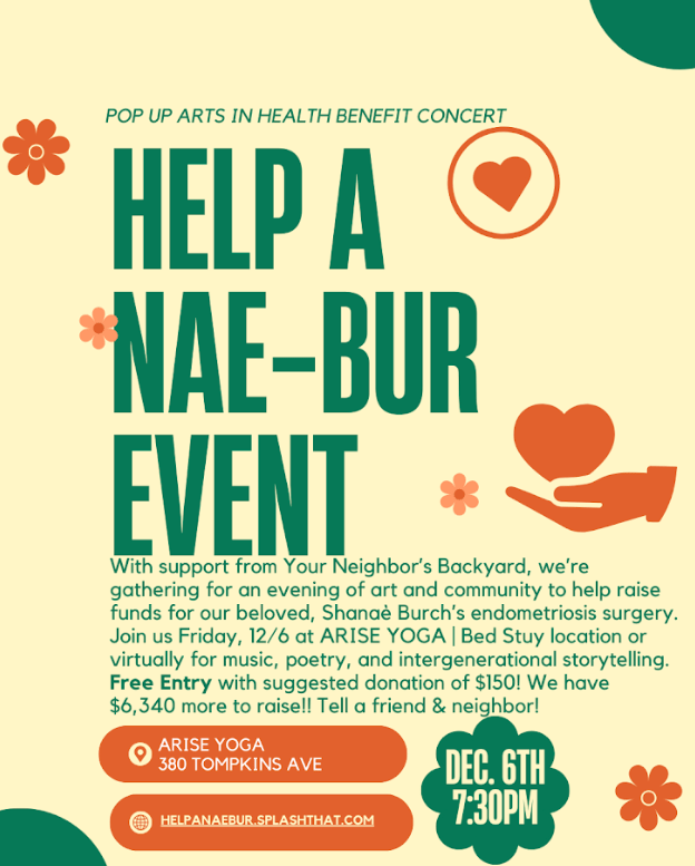 My friends at Your Neighbor’s Backyard partnered with me to produce an Arts for Health benefit concert and my hope was that if I raised more funds that I needed for surgery, I would be able to pay it forward to individuals with similar cases through MomminWithEndo and/or EndoBlack to address the very present health inequities. My loved ones were moved by the mission of MomminWithEndo and I was able to raise $10,866.70 toward my total cost of surgery!